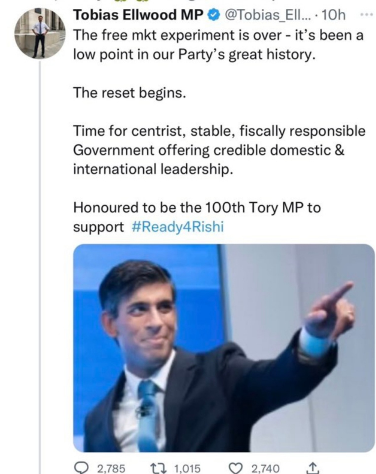 Elwood's tweet is quite telling. Conservatives have been completely infiltrated by the left like all institutions in the UK & his phrasing of reset to me shows what the real motive is. You will own nothing & be happy.