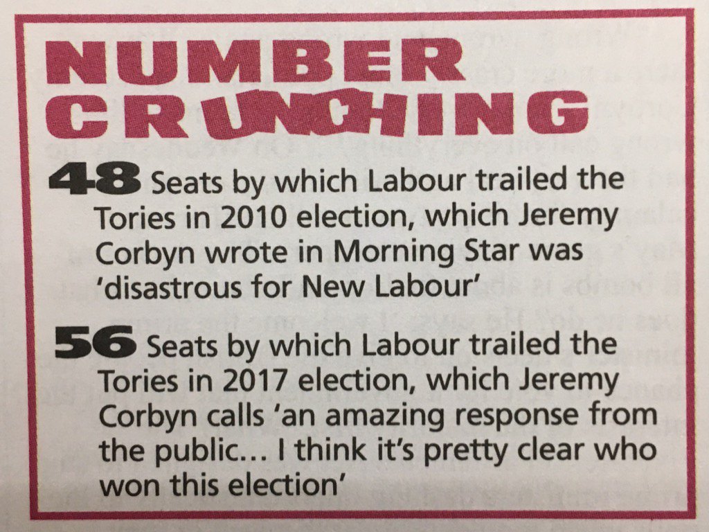 He he. Still the boy did well. After today , I can't see the Tories being in too long. No, he didn't, Nick. Not by any measurement did he do well. Not as well as Brown, Miliband or Kinnock, all of whom had the dignity and common decency to stand down. Edited by Cucking Funt (15 Jun 2017 12.40am)