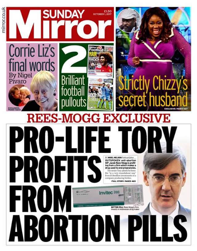 For avoidance of doubt, I shall NO longer respond to any of Gusset's left-wing hogwash as the effluvia contained within it is not worthy of a response, furthermore I have NO desire to provide it with the oxygen of publicity. Please accept that a non-response does not mean that I accept the bile or that I am unable to construct a firm rebuttal of it.Thank You. How is anti abortionist through Christian values Rees mogg profiting from the sale of anti abortion pills left wing hogwash?