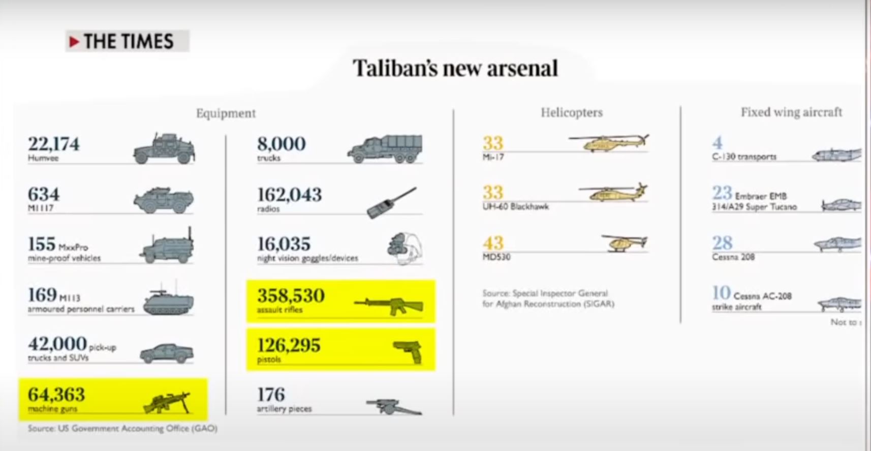 Here is a list of the armour and weapons this idiot in the White house has left the Taliban....no doubt the more juicy bits will go to next door Iran. Yet still none of them take responsibility......The US is run by idiots. Edited by Stirlingsays (01 Sep 2021 5.13am)