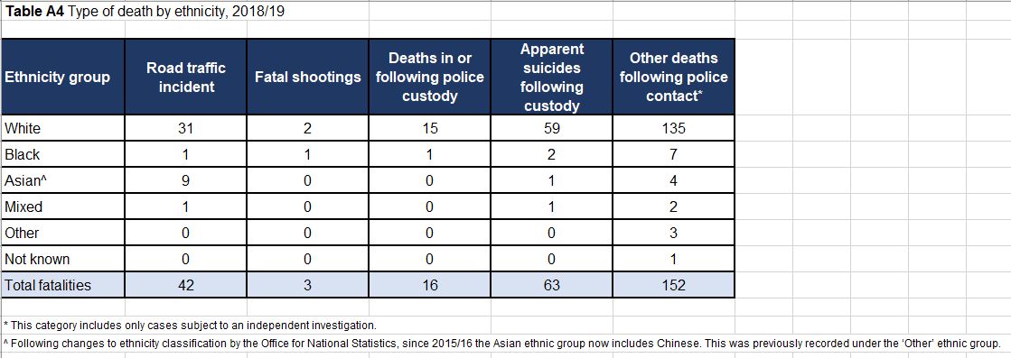 Here's the UK statistic if anybody like Dan wants to claim the police are brutal here.