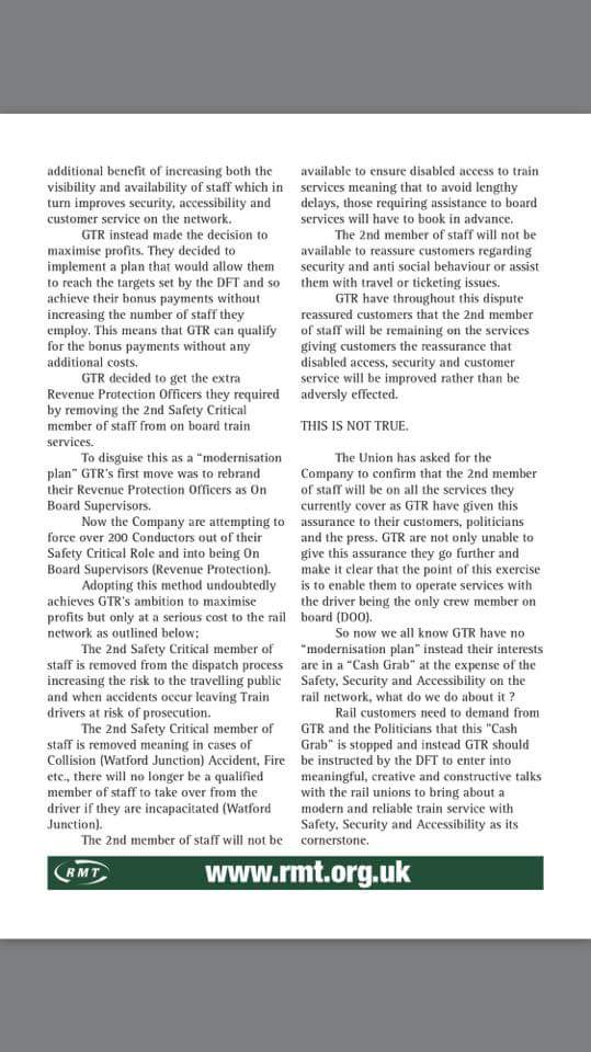 From the RMT. I'm expecting criticism of it from those who don't read it as it's a bit long.. One of two Bit of a snide comment gusset...no real need for it,I have no idea if that's true or not,because it was written by a union.so is hardly impartial.