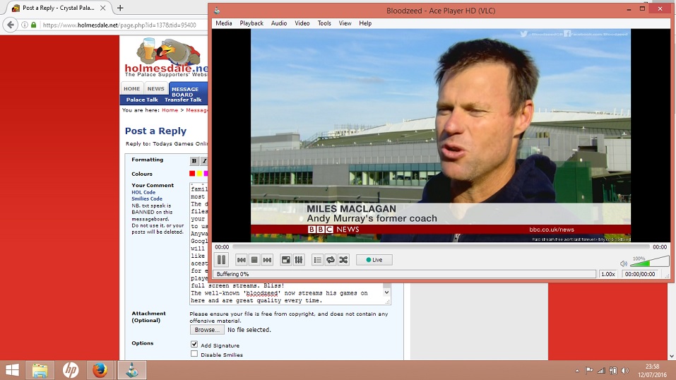 Hello all, Just thought I'd post something that many of you my find of some use. I've recently returned to using a program I briefly used some years back for the sake of the Euros and I'm surprised I didn't do so earlier. I've attached a screenshot for you to see the typical quality (bear in mind I've resized the player as it's full screen otherwise) So yeah, this is just a very brief walkthrough but if anybody wants me to do a proper guide with more piccies just let me know. It's pretty simple anyway. Edited by crvenaeagle (12 Jul 2016 3.05pm)