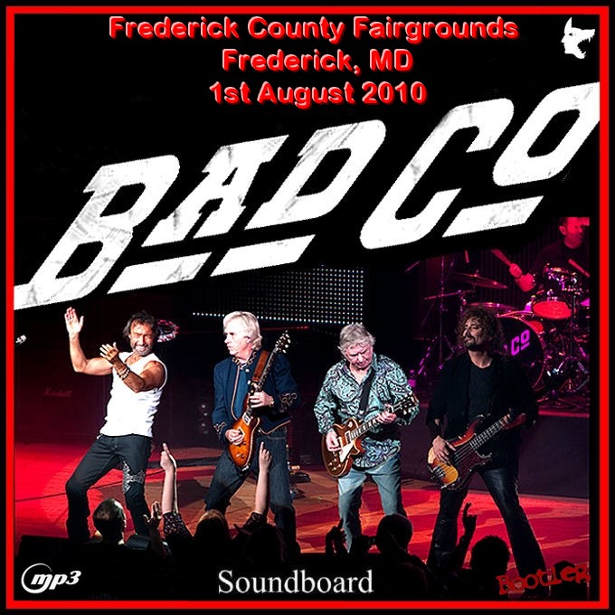 Todays first download is a set by Bad Company that was recorded at the Frederick Country Fairgrounds in Frederick, Maryland on the 1st August 2010. This is in superb quality and the audio has been taken from the soundboard. I've posted a lot of bootlegs by Bad Company over the years - including a couple of other shows from this tour... this is another top sounding show which is thoroughly recommended... and then some.... Here is a download link I found for :- Live at the Frederick County Fairgrounds, Frederick, MD 1.8.10 - Bad Company (Bootleg) Quality : Superb Tracklisting : Can't Get Enough Download Link : [Link] or Download Link : [Link] Filesize : 108MB NB: You only need to download from one of the hosting sites - the file is the same on both. Enjoy!