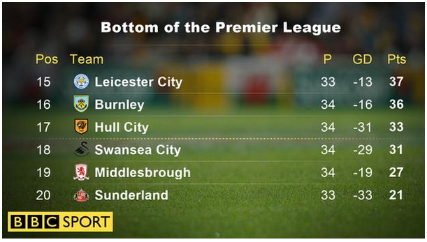 As I was thinking about our bid for safety and all the permutations like MNFS and realistic points for survival, I thought I'd take a look at how many points have been required for Prem survival since it was cut to 20 teams in the 95/96 season. Season | Points | 17th Place | Minimum points for Safety required 95/96 38 Southampton 38 GD The most interesting part of this is not the number of points the 17th placed team accrued but rather how many they could have got away with. Four teams have survived on GD and only four times in the Prem have more than 38 points been required for safety. Whilst I wouldn't claim we're safe yet (at least not mathematically), I do think we are and believe one more win really would see us 100% safe. Apologies, it won't let me use tabs. Edited by sa_eagle (24 Apr 2017 1.21pm) Edited by sa_eagle (24 Apr 2017 1.22pm)