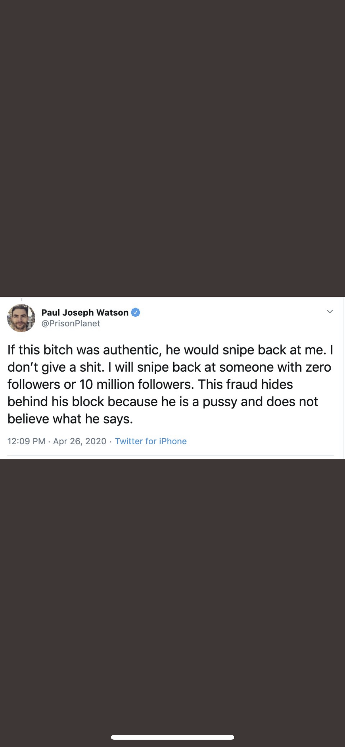 Paul Joseph Watson crying on Twitter because Piers Morgan blocked him. Like a petulant child desperate to be noticed. Literally begging for Piers to respond to him. Thought ‘alphas’ didn’t display this kind of behaviour