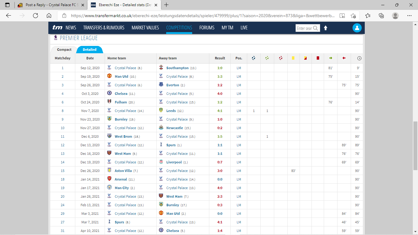That was then, this is now. Instead of holding firm to your illusory vision of the past, why not deal with the present, and accept that PV sees him everyday in training and has made the decision that Eze isn't what the team needs at the current stage. We have heard the narrative of Eze being eased back due to his injury. I have overheard people express the view that even if Eze's career had not experienced a setback due to his injury he would not be a regular in Vieira's team as he simply does not fit into the way PV wants to play and he prefers other players in positions where Eze at his strongest or indeed does not play a formation which suits Eze. I full expect bids for Eze in the summer window.