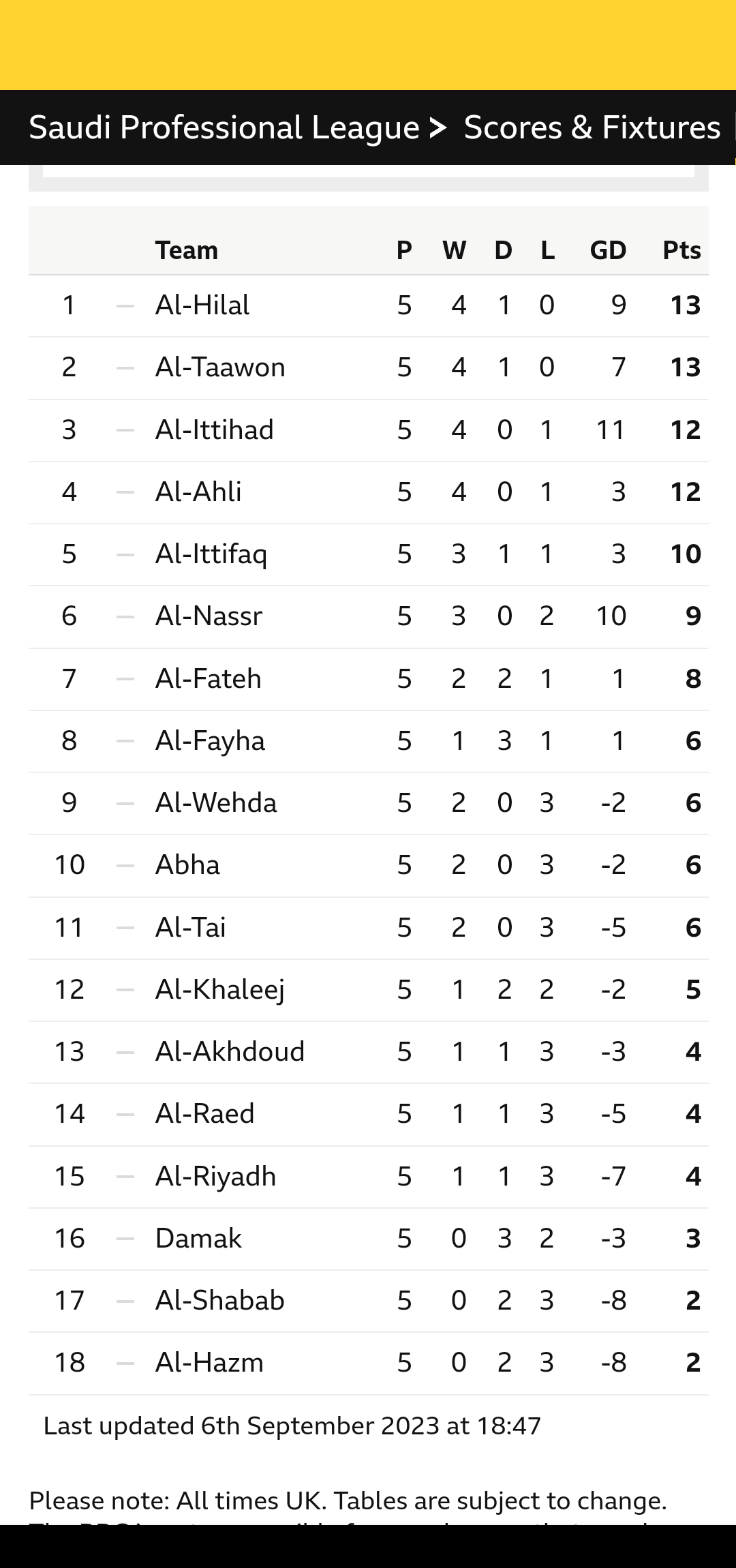 Looking at the team names in the Saudi league - if the attached works - I'm wondering if the theme song for the competition is: 'You can call me Al' by Paul Simon. Looking down the list, I was expecting to see Al-Pardew near the bottom.