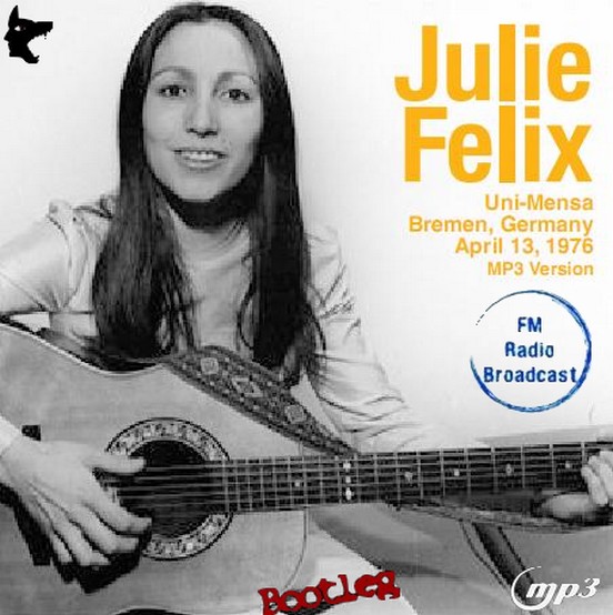 Todays second download is the first bootleg or album by this artist that I've posted - and I found that surprising. The artist is Julie Felix and this is a show recorded in Bremen, Germany in April 1976. This is in superb quality and the audio has been taken from an FM broadcast on Nordwestradio, Globale Dorfmusik which was broadcast on March 5 this year. I remember that Julie Felix was very active in the mid to late 1960's.. but she is still recording and touring today at the age of 74. If you like Julie Felix this is thoroughly recommended. Here is a download link I found for :- Live at Uni-Mensa, Bremen, Germany 13.4.76 - Julie Felix (Boogleg) Quality : Superb Tracklisting : 01. I Can’t Touch The Sun Download Link : [Link] Filesize : 40.5MB (Including Artwork and Tracklisting) Enjoy!