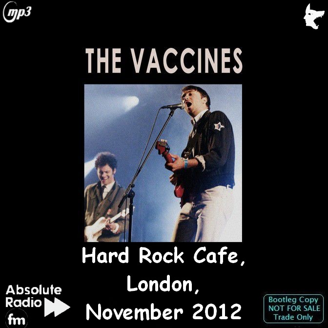 Todays first download is a set by The Vaccines that was recorded at the Hard Rock Cafe in London and was broadcast on the internet by Absolute Radio. The show was recorded on the 6th November this year and is in superb quality. I've posted a few albums and bootlegs by this band in the past - including the bands latest album "Come Of Age" - a few of the songs from that album are played on this set. If you like The Vaccines you will want this one.... Here is a download link I found for :- Absolute Radio Live, Hard Rock Cafe, London, 6.11.12 - The Vaccines (Bootleg) Quality : Superb Tracklisting : No Hope Download Link : [Link] Filesize : 92.1MB Enjoy!