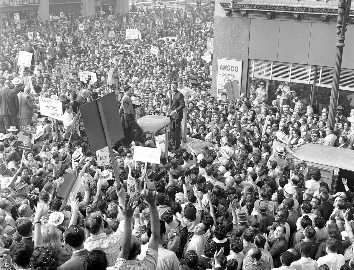 Kennedy didn't hold huge rallies routinely as a way of galvanising support. He certainly became much admired at home and across the globe but much of that came later and wasn't something he engineered via a personality cult.