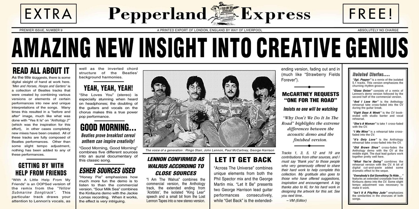 Todays first download is a bootleg by The Beatles thats in absolutely amazing quality. It's been taken from studio master tapes and is top notch. The artwork with the album is wicked (see below) and the setlist is fantastic. I first posted this one in 2009 - so if you missed it then, grab it now... this is thoroughly recommended - and then some!..... Here is a download link for :- "Men & Horses, Hoops & Garters" - The Beatles (Bootleg) Quality : Superb Tracklisting : 01 Sgt Peppers Lonely Hearts Club Band Download Link : [Link] Filesize : 187MB (Including All Artwork) Back Cover : [Link] Pepperland Express : [Link] Enjoy!