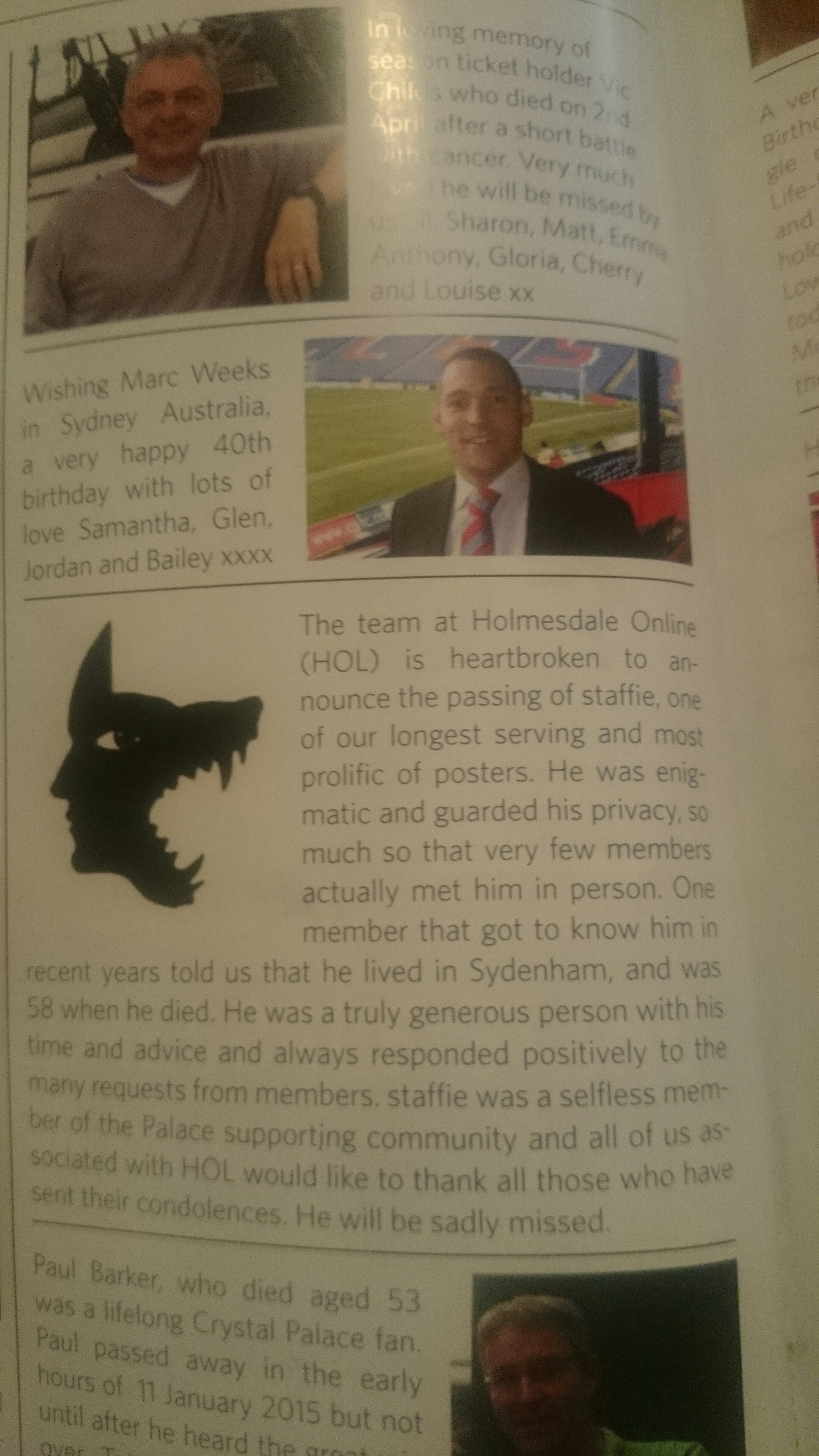 Bit of an ask I know but if anyone could scan and upload the tribute in the programme for us exiles I would be very appreciative.
