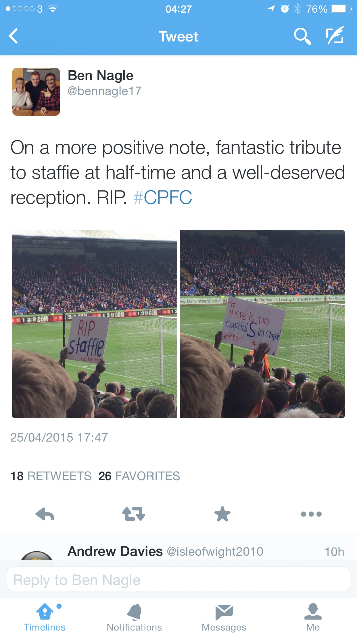 The bloke with the RIP sTAFFIE sign was at the front of block D love to know who it was just to shake his hand for the effort. Miss you just being about mucker, a true palace gent