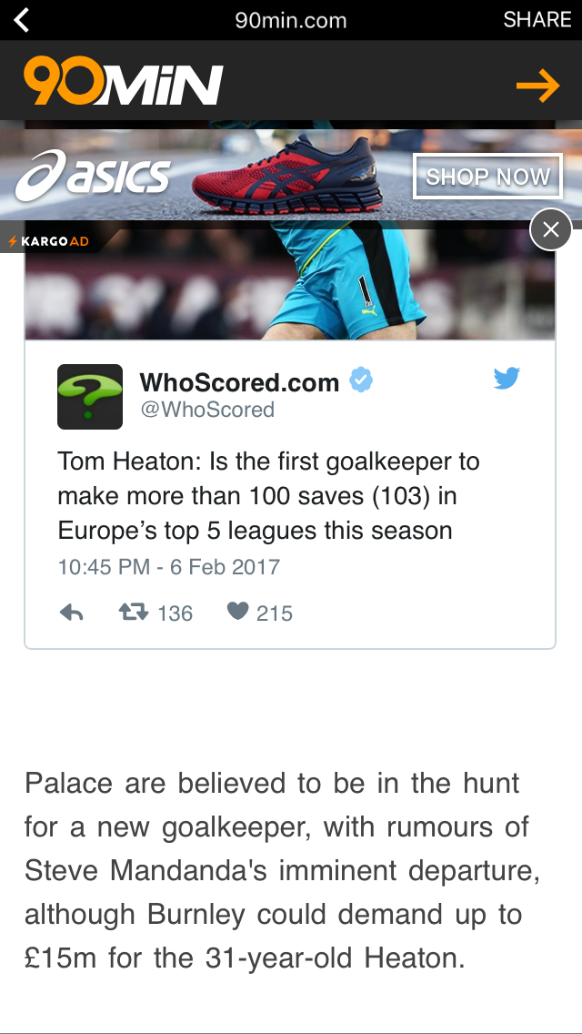 I doubt we're in the hunt for someone like Heaton. At 31, he's hardly a long term solution. Surprising comment, as everyone should realise there is nothing long term in the current football era.