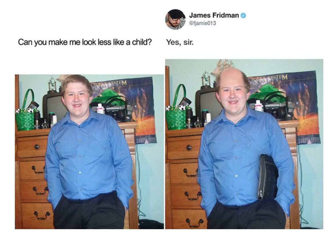 Photoshop request sorted. 'Man took the same photo for 35 years. You'll be astonished by the last one.'