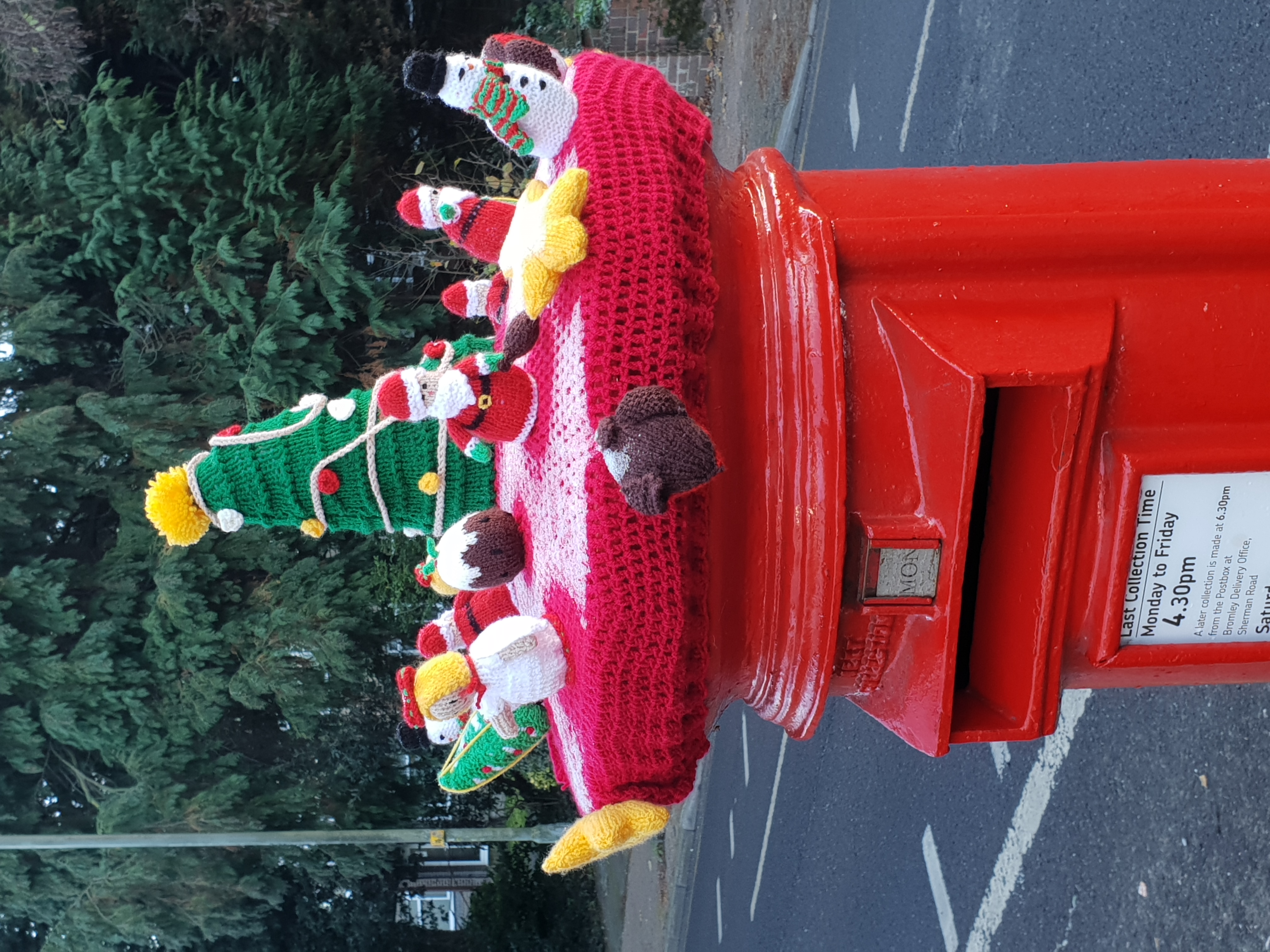 My local post box I am told it is called yarn bombing. It has been that way for 2 weeks pleasantly surprised that some yob hasn't wrecked it. A nice bit of English quirkiness!
