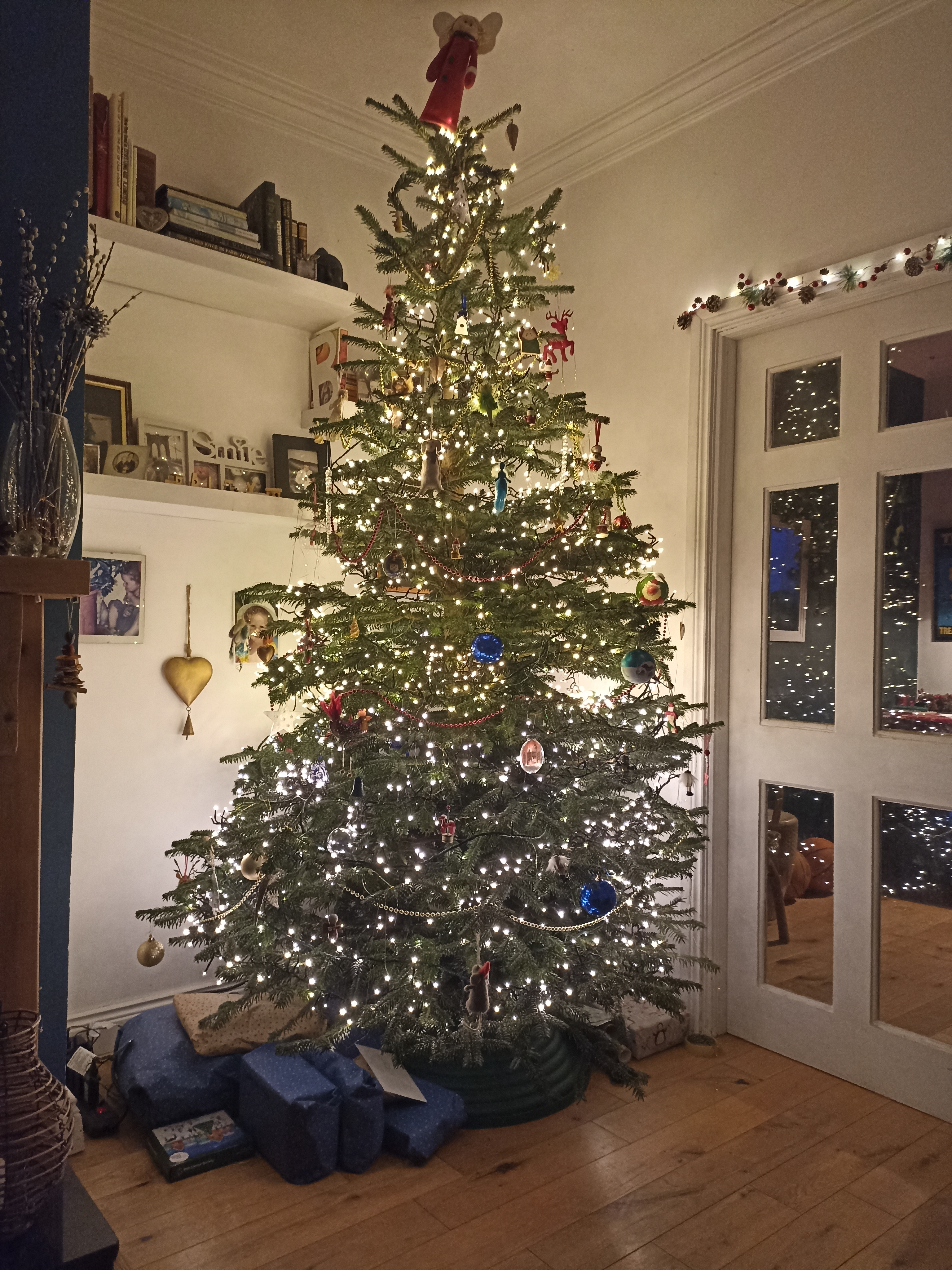 I got my tree from the Christmas tree farm this year. You walk around with a ribbon amongst the trees, then they cut yours down for you, wrap it, and help you to the car. If you have kids it would be a day out. As it was, it was me and the missus, and, of course, we had to get the perfect tree. We thought it was maybe 7-8 foot, but was actually over 9. 70 euro.
