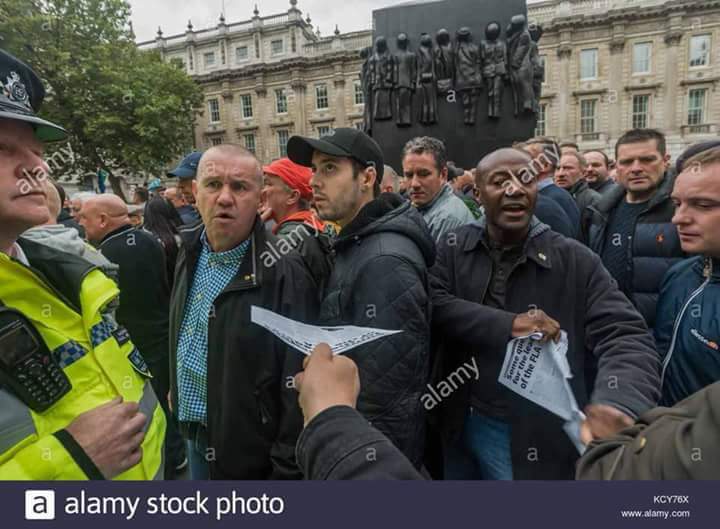 Here's a picture for Nick gusset, it captures the moment someone from stand up to rascism hands out a leaflet on the last FLA march.