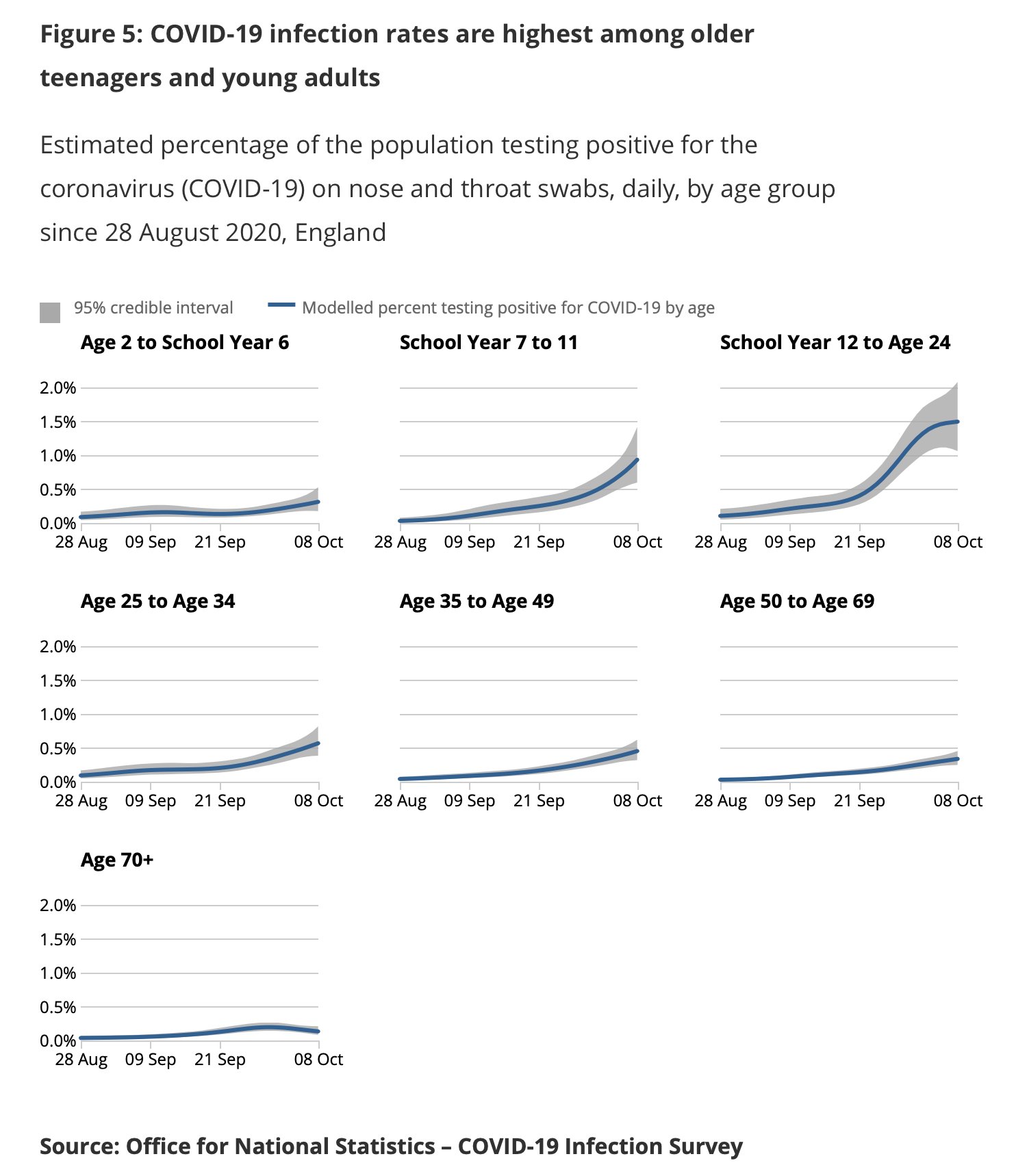 Older people have more weaknesses. Therefore the mixing of age-groups is more problematic, as some younger people are asymptomatic. Teachers v pupils students v family drinkers v bar staff The end isn't going to be pretty Infection rates by age groups