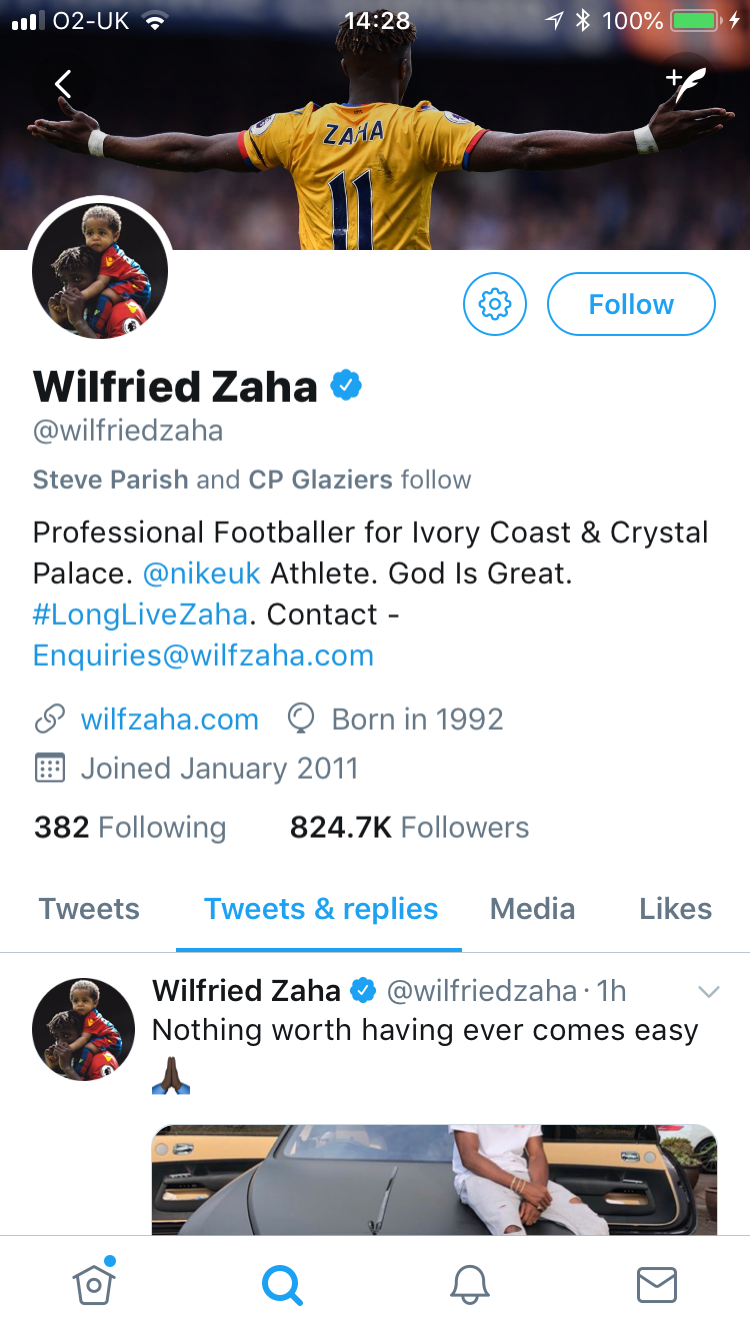 What about him removing cpfc from his instagram bio, not that long after Parish unfollowed Zaha on twitter, social media and such isn't a great thing to be going off of but it is slightly concerning. Ho many twitter accounts does Wilf have?