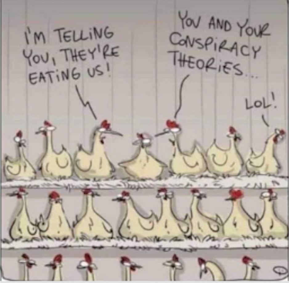 I can't be bothered tackling your re-definitions and unrealistic statements that don't account for how human nature actually works nor tackles the logic of ponzi systems....I think you full well know but as it isn't going to affect you negatively you couldn't care less....It's perhaps obvious that you decided long ago to bat against your own side as you're too old to have been indoctrinated at a university....or is it your side?....Mmmm, that's perhaps an actual conspiracy theory. Regardless, as you continually waffle about conspiracy theories....even though the evidence for what I say is out there and official in policies and laws and isn't even hidden for those actually looking I'll post this meme....it seems to sum up your typical positioning rather well. Edited by Stirlingsays (12 Feb 2022 12.02pm) Anyone who describes immigration as a Ponzi scheme designed by elites, must expect the reasoning, all of which is copied from dark corners of the internet, to be described as a conspiracy theory. For that is all it is. Using official policies and laws as the justification is the usual excuse, for that is exactly what I said happens. Mix some truth with assertion to paint a picture that exists only in the imagination.