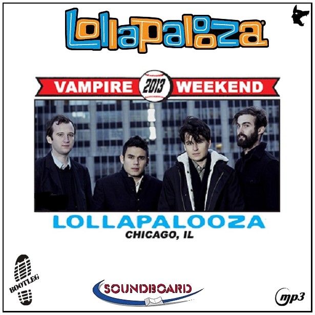 Todays second download is a set by Vampire Weekend that was recorded at the Lollapalooza Festival in Chicago on the 4th August 2013. This is in superb quality and the audio for the show has been taken from the soundboard and sounds top notch. I've recently posted two other bootlegs by VW - their sets at the Coachella Festival and also at Glastonbury Festival - both this year. If you downloaded those then grab this show - it's wicked and thoroughly recommended... Here is a download link I found for :- Live at The Lollapalooza Festival, Chicago, USA, 4.8.13 - Vampire Weekend (Bootleg) Quality : Superb Tracklisting : Cousins Download Link : [Link] Filesize : 161MB (Including Artwork) Enjoy!