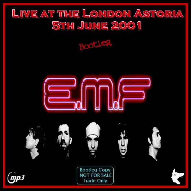 Todays extra download is a set by EMF that was recorded at the London Astoria on the 5th June 2001. This is in superb quality and the audio for the show has been taken from the soundboard and sounds top notch. According to my files this is the first album or bootleg by this band that I've posted and I don't really know much about them. They have released 3 albums and have split up and reformed 3 times over the years. The name "EMF" is believed to be an abbreviation of "Epsom Mad Funkers" - it's rumoured that it really stands for "Electromotive Force" or "Ecstasy Mother Fukcers" - the band were signed to EMI/Parlaphone records after 4 gigs - without being asked for a demo tape (thanks Wiki). If you like EMF - then grab this one.... this is thoroughly recommended... Here is a download link I found for :- Live at the London Astoria, 5.6.01 - EMF (Bootleg) Quality : Superb Tracklisting : 01. Children Download Link : [Link] Filesize : 176MB (Including Artwork) Enjoy!
