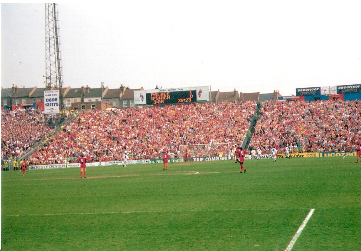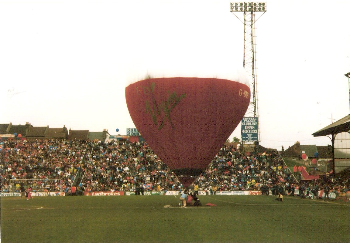 11/5/91 Div 1 Palace 3 Man Utd 0 Final day of the season. 25,301 saw Palace clinch 3rd place against a United side that had other things on their mind: a Cup Winners Cup date against Barcelona the following week. Still a polished victory though with Wright getting his 25th of the season and Salako netting twice, his second a 25 yard classic. Before the game, to commemorate Virgin's last day as Palace's sponsor, a Virgin Atlantic hot air balloon was set to take off from the middle of the pitch. The only problem is it refused to lift off and was dragged off instead.
