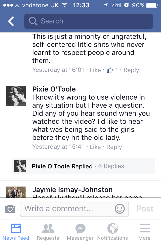 One of the comments on Facebook "Hardly touched her. Black people getting victimised again!" It was made by a none white person, and he wasn't joking Could you put a link to that please, I would like to see the reactions it must have received.