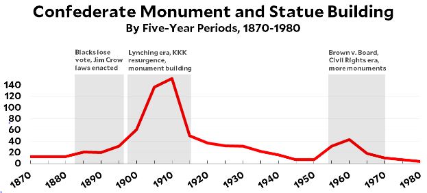 That is a fair point. I'd need to be convinced that they were erected purely to celebrate 'racism' and slavery before I took a sledgehammer to them. That would be unprovable I'd say though it is interesting to see when most of these monuments popped up. Even if or when a monument was removed should a local community decide so do so, I wouldn't ever be in favour of it being destroyed. It's still a part of history and something we can learn from.
