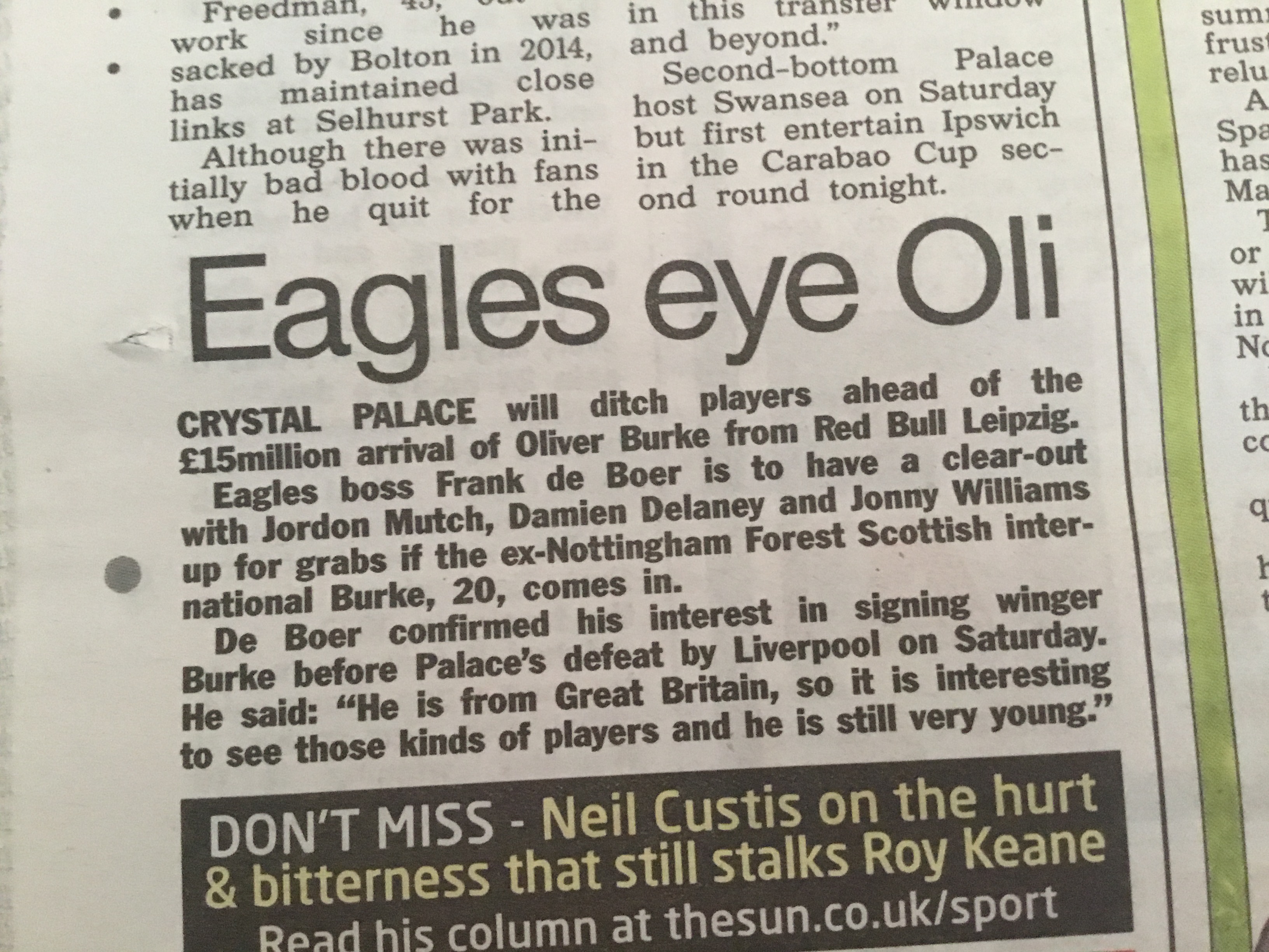 Burke in We can live with that at Palace surely