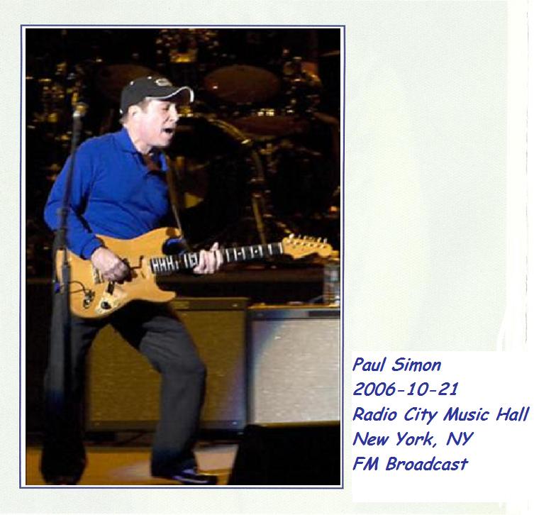 Todays first download is a set by Paul Simon that was recorded in New York on the 21st October 2006. This is in superb quality and the audio for the show has been taken from an FM Broadcast of the set. I've previously posted a couple of other shows from this tour by PS but none recently. A top setlist with tracks from both his solo albums as well as a good helping of Simon & Garfunkel material. If you like Paul Simon - then this is thoroughly recommended.... Here is a download link I found for :- Live at Radio City Music Hall, New York, NY 21.10.06 - Paul Simon (Bootleg) Quality : Superb Tracklisting : CD 1: CD 2: Download Link : [Link] Filesize : 171MB (Including Artwork and Tracklisting) Enjoy!