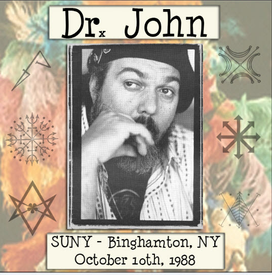 Todays second download is a set by Dr John that was recorded at the SUNY in Binghamton, New York on the 10th October 1988. This is in superb quality and the audio for the show has been taken from an FM broadcast and sounds top notch. I recently posted a Dr John boot with Eric Clapton as well as a solo set. This is another top show for the collection with a top setlist which includes his classic "Right Place, Wrong Time'. There is a short radio interview at the very end of the show - this can easily be deleted if not wanted. If you like Dr John - this is thoroughly recommended... Here is a download link I found for :- Live SUNY Binghamton, Binghamton, New York 10.10.88 - Dr John (Bootleg) Quality : Superb Tracklisting : 01. John's Boogie Woogie Download Link : [Link] Filesize : 267MB (Including Artwork and Tracklisting) * John B. Sebastian - Harmonica Enjoy!