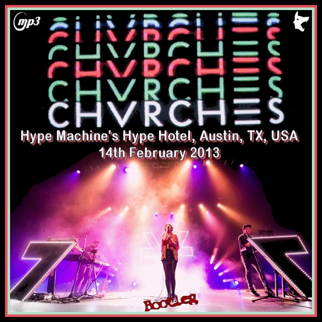 Todays extra download is the first album or bootleg by this band that I've posted. They are called Chvrches and they are a Scottish electronic music band formed in 2011. The band consist of 3 members who all use various synthesisers. Apart from that I know nothing about this band. The set was recorded at the Hype Machine's Hype Hotel in Austin, Texas on th 14th February 2013 and sounds top notch - so if you like a bit of electronic synth sound - give this one a try... Here is a download link I found for :- Live at Hype Machine's Hype Hotel, Austin, USA, 14.2.13 - Chvrches (Bootleg) Quality : Superb Tracklisting : Lies Download Link : [Link] Filesize : 57.7MB (Including Artwork) Enjoy!