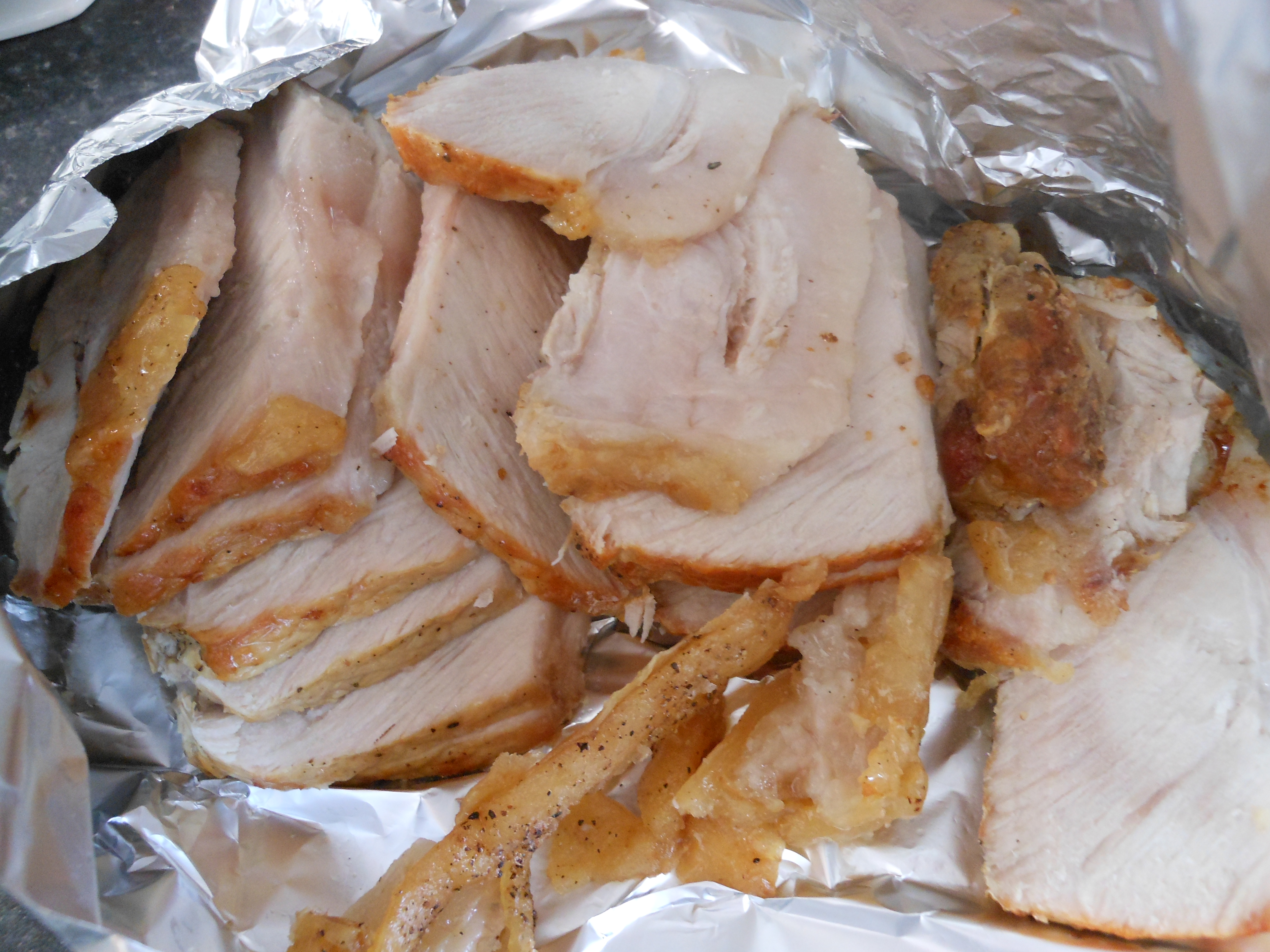 OK, a few action shots from a lovely dinner. Though the pork was roasted, the potatoes weren't. They were mashed, so not one for the purists. So, pork out the oven, sliced and resting,...
