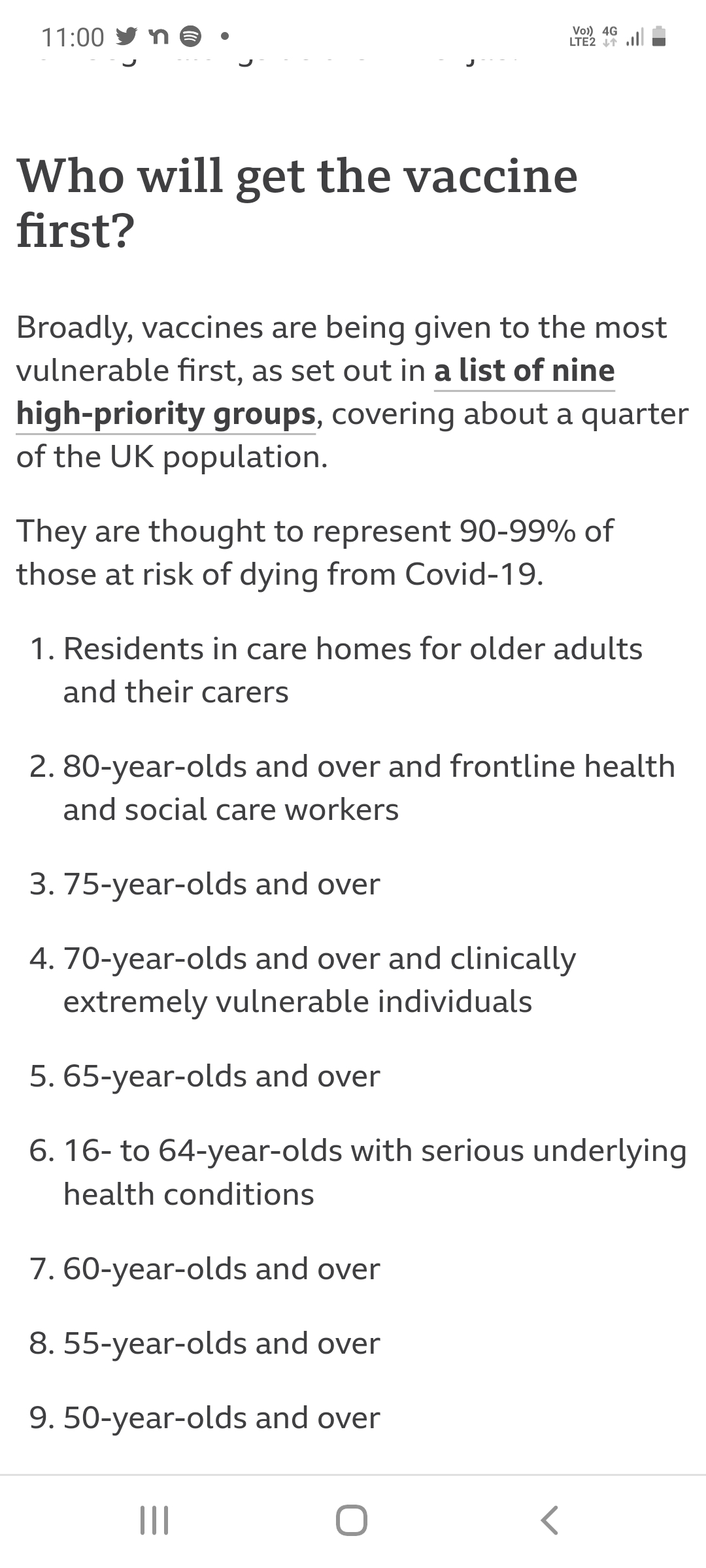 The goverment has been particularly cagey on some statistics throughout. Particularly, the average age and average BMI of those dying with the disease. From the announcement about the vaccination programme, you can see that 90 to 99% of the deaths are happening from ages 50 and up or those with underlying health conditions. Total deaths seem to be up about 10% from the previous 5 year average. Apparently the average age of COVID related deaths is 82 and the majority are overweight or obese. I still think its drastically unfair that young people are taking the brunt of critism for misbehaving whilst others have negated their health for decades and the whole country is locked down to protect them. Schools and University are meant to be at the epicentre of the current spread. You can't expect children to behave impeccably for an indefinitely period of time. I'm not sure its unreasonable to say, if you have school age kids or are a young adult at uni - stay away from the over 50's until they are vaccinated! If you are over 50, don't go to the pub or crowded spaces if you can avoid it! Lockdown measures are getting more and more draconian and likely to get worse due to lack of compliance. Can't we just increase the fines, or take away furlough from those who are caught breaking the rules. Impose age related restrictions to those that aren't vaccinated, and start opening up the country again. Give people some more accountability for themselves but have greater powers for people stupid enough to get caught stepping out of line?