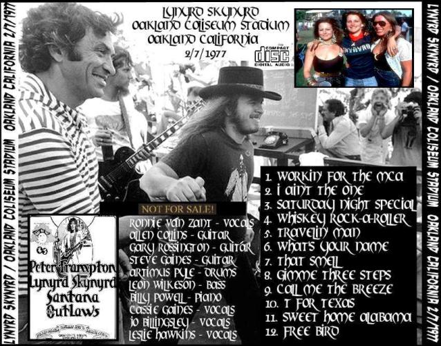 Live at Oakland Coliseum Stadium, Oakland CA 3.7.77 - Lynyrd Skynyrd (Bootleg) Quality : Excellent Tracklisting : 01 Working For The MCA Download Link : [Link] Filesize : 95.7MB (Including Alt Artwork and Tracklisting) Back Cover : [Link] Enjoy!