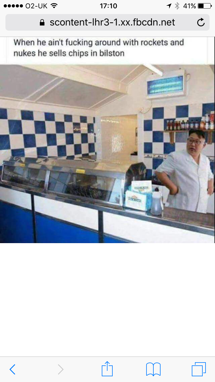 Mr Kim has given up on the nuclear powered Communist rule and now sells fish and chips near Wolverhampton.