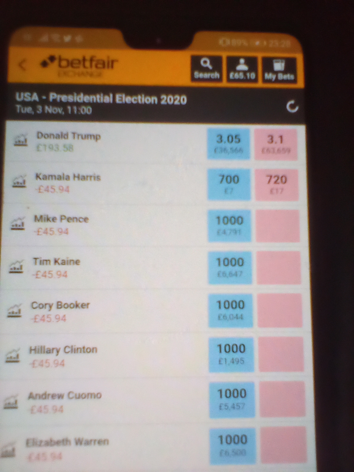 I think and hope Biden wins, but has to win handsomely for a smooth takeover, anyone want to put there hope and prediction down here? When trump wins so far I'll get 193.58 from Betfair but I'm adding bits and bobs to the be, aiming to get 400/500 profit depending on spare capital!! 4 more years!!! Actually going aim for 400 🎺🎺🎺🐇🐇🐇