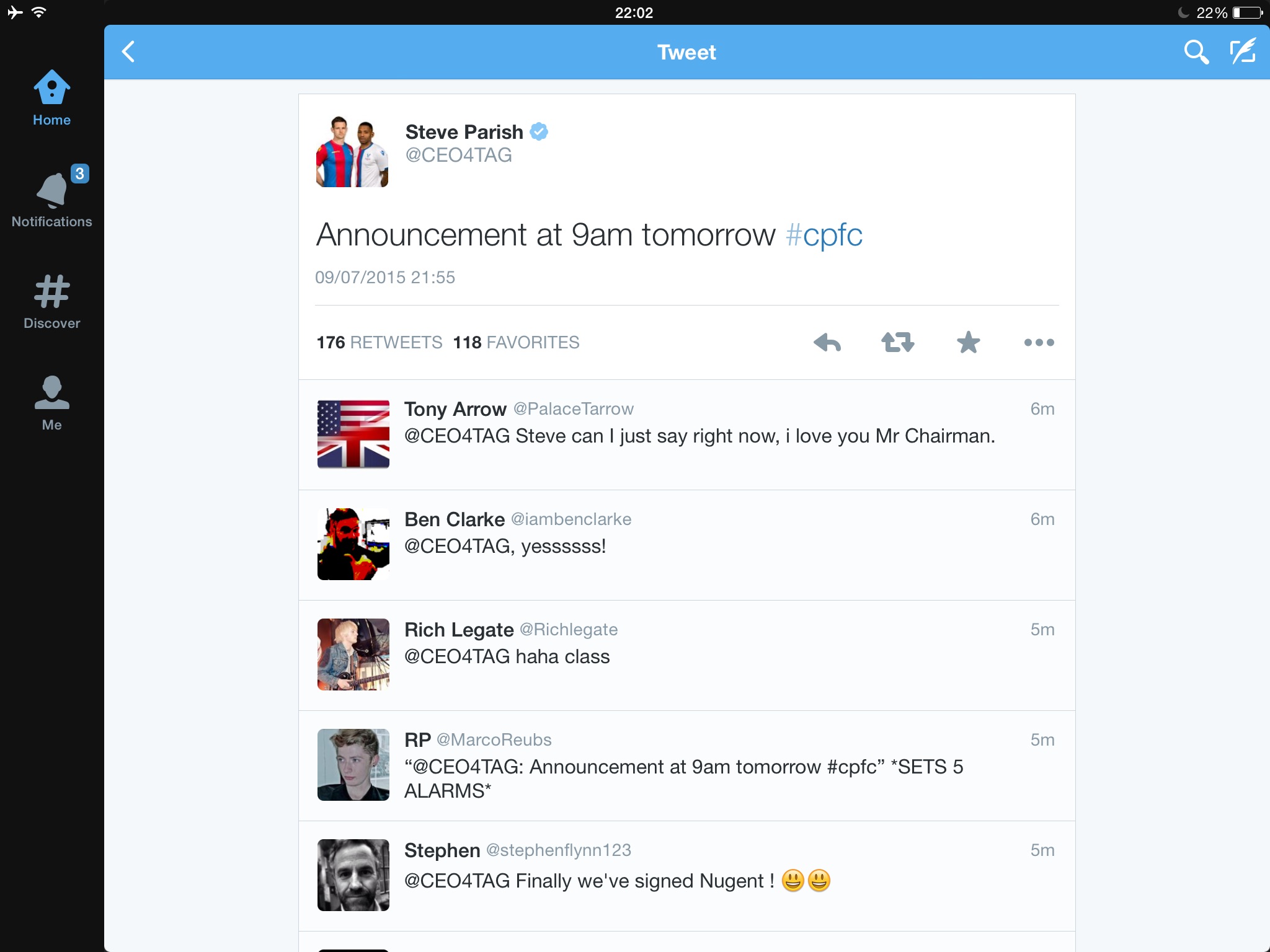 Steve Parish has just tweeted that there will be an announcement at 9am tomoorow morning😀