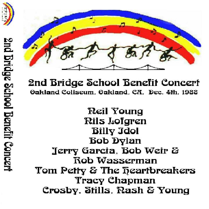 Todays first download is a show in aid of the Bridge School Benefit, Oakland, CA. on the 4th December 1988. This is in superb quality and the audio for the show has been taken from the soundboard and it sounds top notch. There are a host of starts giving their time for this cause including Neil Young, Nils Lofgren, Billy Idol, Bob Dylan, Jerry Garcia, Bob Weir, Tom Petty & The Heartbreakers, and Crosby, Stills, Nash and Young. This is great stuff with some classic tracks being performed by the artists. I have previously posted the first Bridge School Benefit Show - if you downloaded that then give this one a try... this is thoroughly recommended... Here is a download link I found for :- Bridge School Benefit 2, Oakland Coliseum, Oakland CA 4.12.88 - Various Artists (Bootleg) Quality : Superb Tracklisting : Neil Young Nils Lofgren Billy Idol Pegi Young Bob Dylan Jerry Garcia, Bob Weir & Rob Wasserman Tom Petty & The Heartbreakers Tracy Chapman Crosby, Stills, Nash & Young Download Link : [Link] Filesize : 460MB (Including Artwork * with Crosby, Stills & Nash Enjoy!