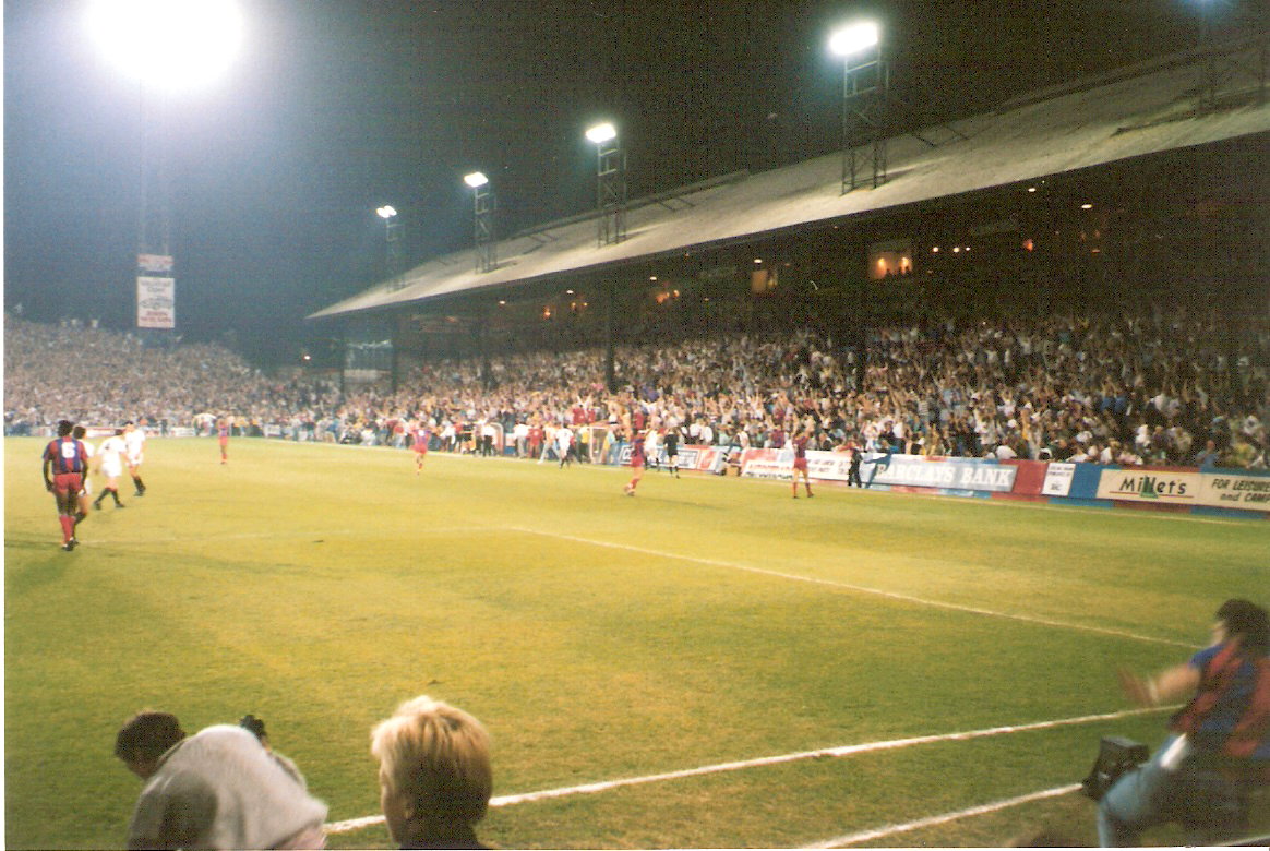 3.6.89 Palace 3 Blackburn 0 One of the greatest days to be a Palace fan: Play Off Final 2nd leg. Despite a 3-1 defeat in the first leg, with the likes of Wright and Bright in your team you still felt we had a chance. I can't actually remember many games i felt more nervous about before kick off. A 30,000 crowd saw Wrighty put us in front, then early in the 2nd half referee George Courtney (who became a lucky charm as he refereed the Liverpool Semi the year after) gave us an unusual penalty. Brighty was taken out by Hendry on the edge of the area but Courtney seemed to allow play to continue, then McGoldrick goes down a little softly and he points to the spot. Not sure how he came to the decision but somehow i think he got it right. Cue Dave Madden and that celebration. After one hour of relentless Palace pressure, there then followed a stalemate where Palace suddenley realised they were back in it and both clubs seemed scared to truely go at the other. There were a few close shaves here and there - Garner notably - then Wrighty bangs in the third and the place goes potty! What celebrations! What a day - and night! - that was. Me, my brother and mate ended up in Crystals that night dancing and celebrating the night away with the likes of Thomas, Pembo, Salako, Barber.....great memories.