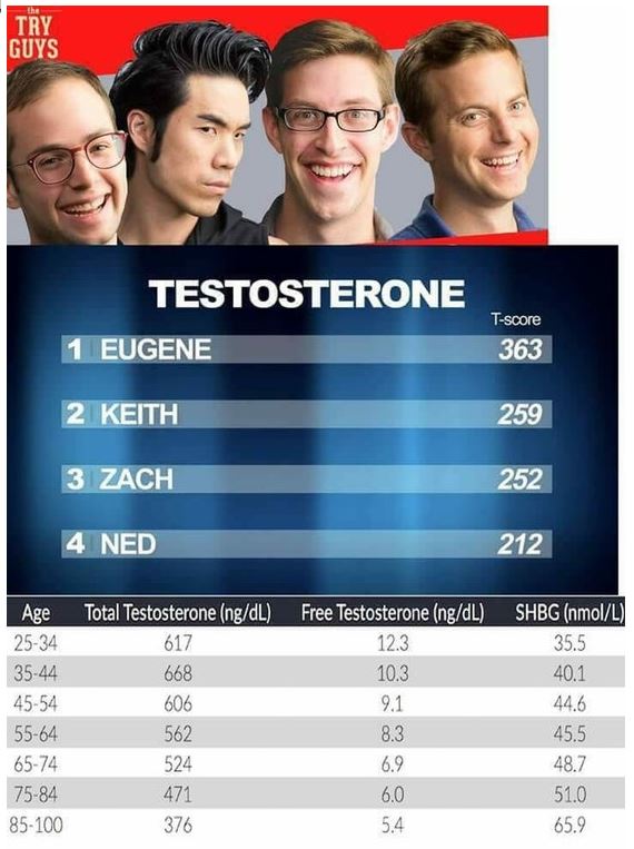 We have now have a media of soy boy journalists who push their brand of "masculinity" to everyone. Four men from Buzzfeed recently had their testosterone tested and found it to be the levels of a teenager. Shock. There was a university study this year that showed weaker men are more likely to go for socialist policies than stronger ones. Edited by Penge Eagle (08 Dec 2017 12.45am) Who didn't listen in biology lessons? A normal male testosterone level peaks at about age 19, and then it slowly declines. The Soy Boys of Buzzfeed must be well happy.