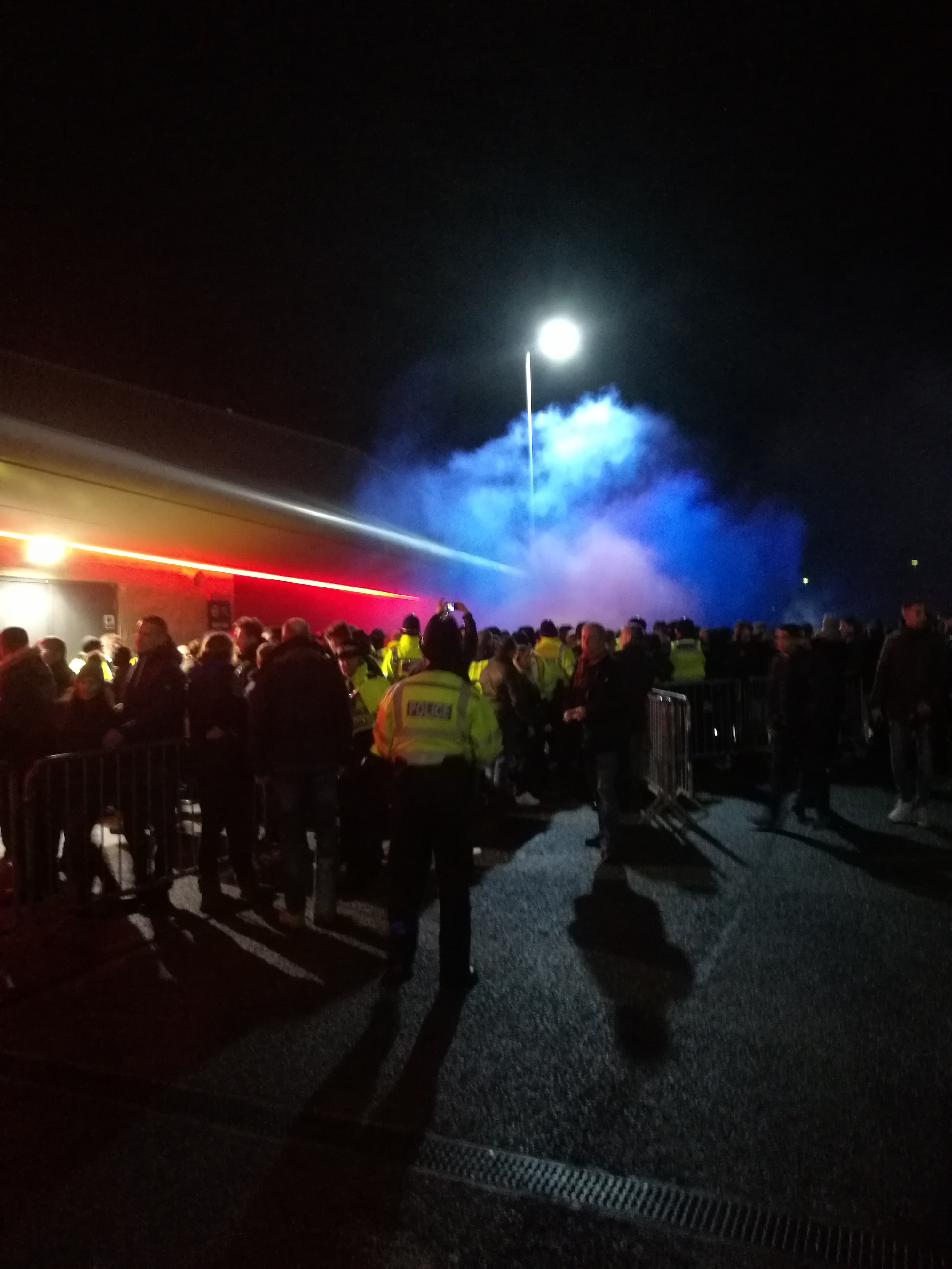 A few cups of tea and a soak in a hot bath and I am back.. I travelled to Brighton. I was wearing my colours (only person I saw all day / evening in them) we were marched the long way to Brighton station to board the train to Falmer. This was to be expected and to be honest all the chanting, shouting and attention we attracted through town was part of the tie and the away day experience. It was a buzz to be part of that.. Took forever to be put on the train , police filmed us constantly. Again expected. Didn't get off at falmer until kick off. That's when the problems began. Through Brighton we were kept kettled and therefore protected by and large. At the perimeter of the amex it was a free for all. We had to pass several of their entrances to get round to ours (this is one thing which they could do with changing in future) now bear in mind I was wearing colours you had Brighton to the left, us to the right and a line of police packed shoulder to shoulder down the middle like a wall. An officer pushed me with full force on my shoulders over to the Brighton side. They were fighting to get at our lads, all sorts were being thrown from both sides. I was asking then shouting to be let through away fRom them to my own supporters and the police refused and kept pushing me back. I wasn't drunk, I wasn't laity or swearing and they put me into a situation of being hurt. Eventually an officer grabbed me and shoved me back to my fans in front of horses which were being driven through the crowds to disperse them. Bha fans were running out of their entrances to try and get to our fans. I walked round the bend to our entrance and was met with smoke bombs everywhere and absolute total chaos. So we literally arrived in the middle of it all. I will post a photo of the scene which greeted us at the end. We were then kettled , they rode their horses into us, they sent dogs into us. We had to use the back of coaches to toilet in the 60 odd minutes we were kept there. They started to make the cordon smaller and smaller and with that began the crush and surges of fans. You had no control over which direction you were pushed in it was like being on a wave being tossed about. Scary. At one point I stopped and tired to stand still so not to be knocked to the ground and a police officer punched me in the back between the shoulder blades and shouted to keep moving.. their attitude stank. They treated us like animals and vermin. Taken back to falmer and made to stand there for ages as there was no train for us. At Brighton they refused to let people leave the station and we were shouted and sworn at by police to get on the bedford train at the next platform. I approached an officer to ask if it called at London.bridge and I was spoken to like filth and shouted at to get on the train. They were vile. Edited by Michaelawt85 (29 Nov 2017 1.14pm) Sorry you had to go through that. I have never been to Brighton away and never will. You really had to think whether a football match is worth that.