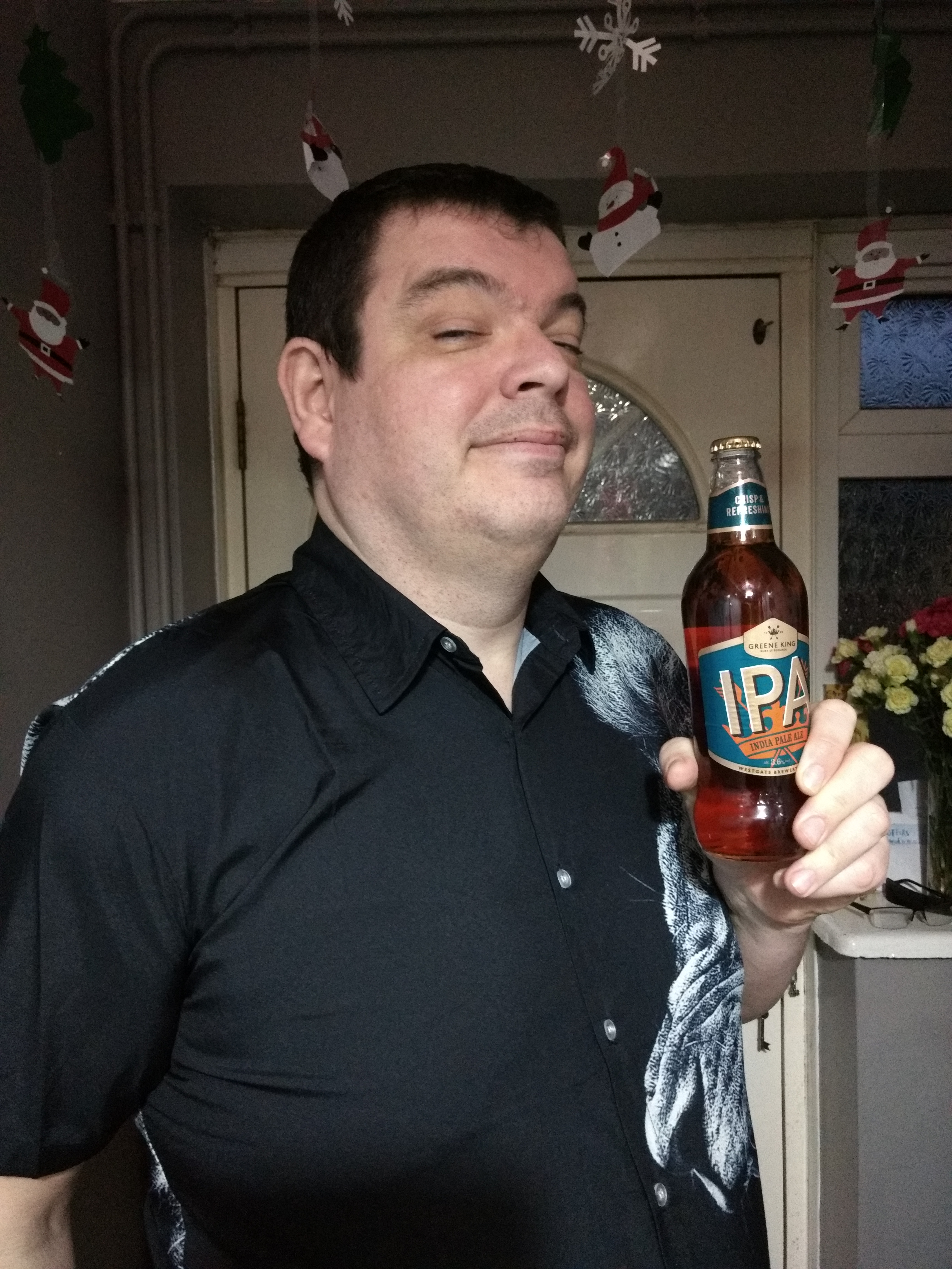 On today's hit list is Greene King's IPA....An award winning beer brewed in Bury St Edmunds in Suffolk...but on the bottle it's apparently an Irish pale ale? So maybe that's its origin. A light clean hoppy taste but not weak as with previous in the series and it comes with a light malty aftertaste. I quite like this one. I could get seriously pissed on that. 8 out of 10. You're not a beer drinker are you? It's India and by the way if there are any Adnams pubs near you, they're normally pretty good.