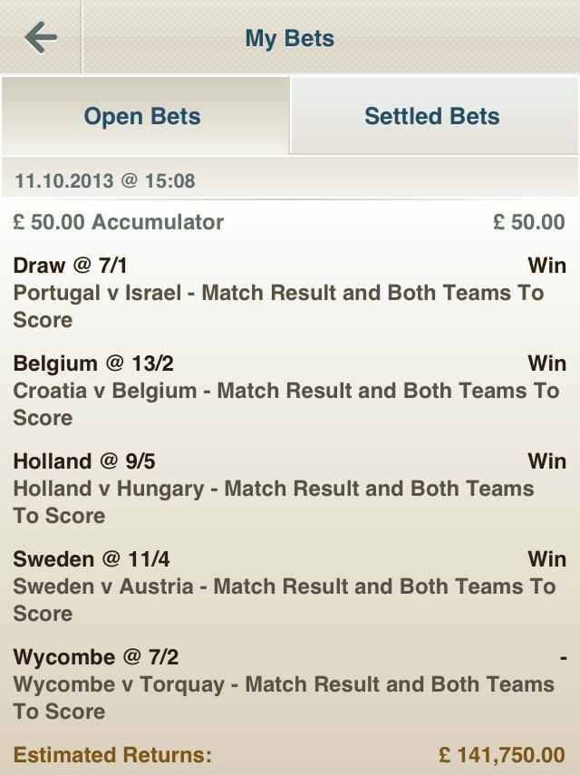 This is crazy! Quality! Well jealous! Does anyone else use William hill? They've got so many ways to bet but wondered if anyone does a particular bet they find fun/profitable?