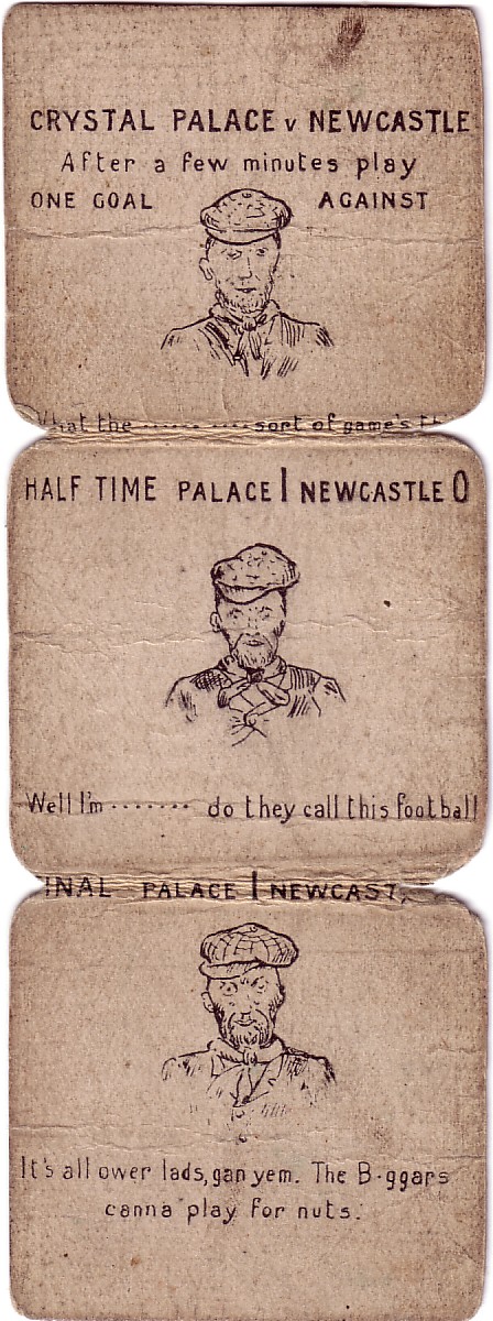 This card was done by a Newcastle fan after we beat them in 1907. It was a shock of humungous proportions and the Toon man was obviously shocked and upset about it!