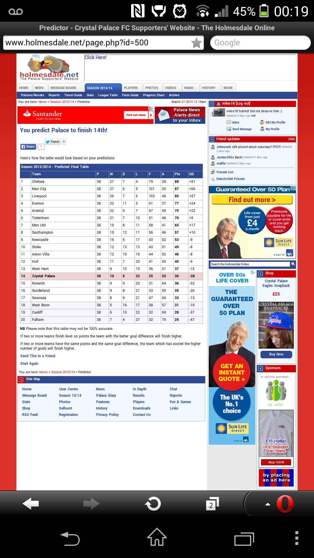 Mine was a bit hurried and turned into a farce, Palace ended up 13th Will try and do it later and put a bit more thought into it