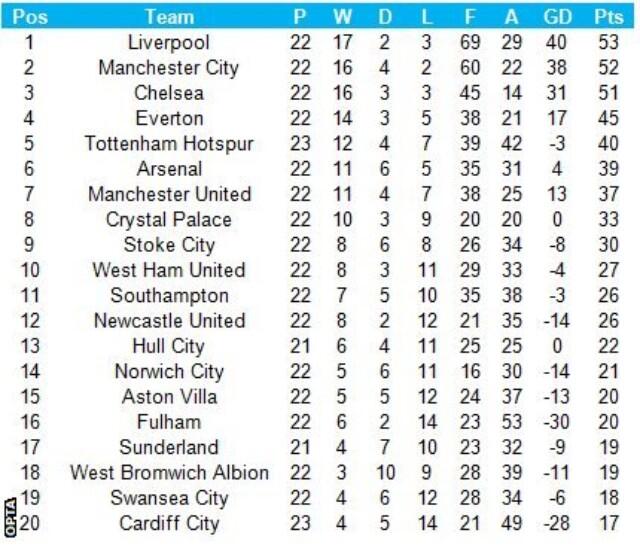 Anybody clever enough to be able to tell me what the Premier League Table would look like taking only the last 25(?) games into account. I think we won 11 of those games. Would we be anywhere near qualifying for Europe? I could probably work it out meself, but I'm far too lazy.